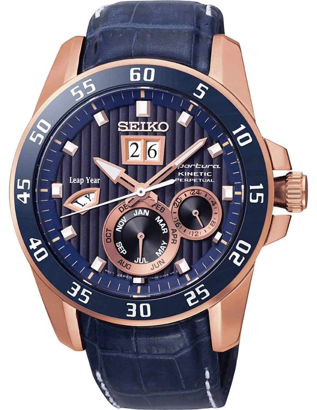 Montre Homme Seiko Sportura Kinetic Perpetual SNP064P1 Bracelet en cuir bleu