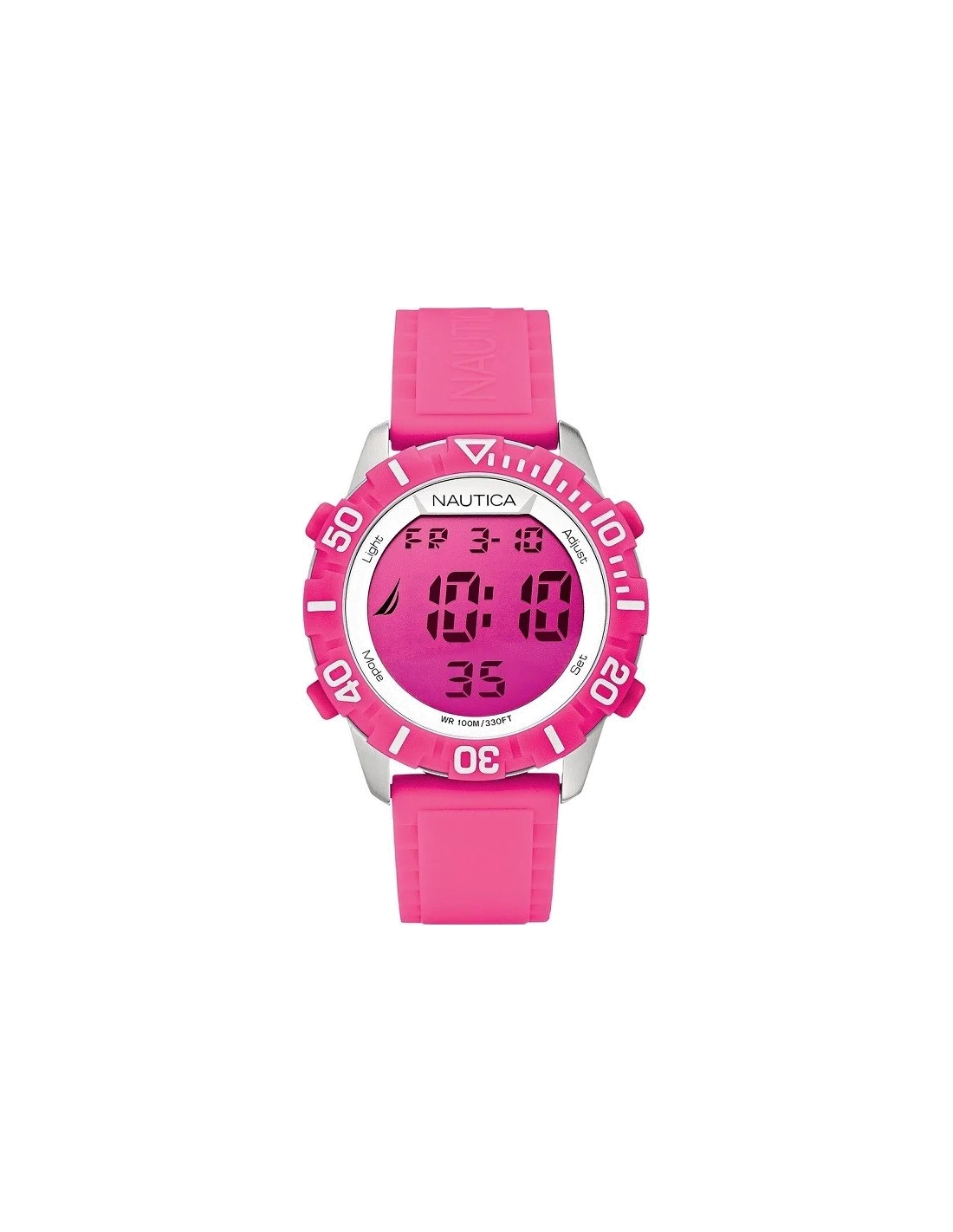 La A09930G de Nautica est une montre sport en silicone rose.
