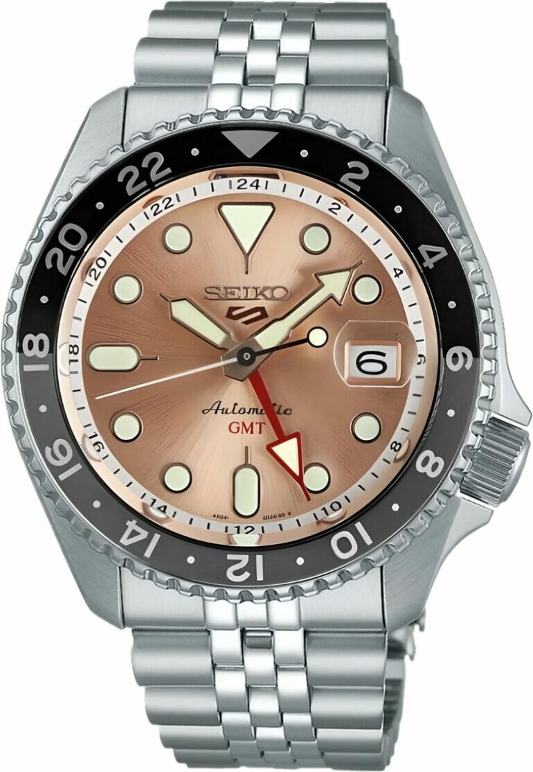 Montre Seiko 5 Sports GMT SSK043K1 Automatique Cadran Saumon Doré pour Homme