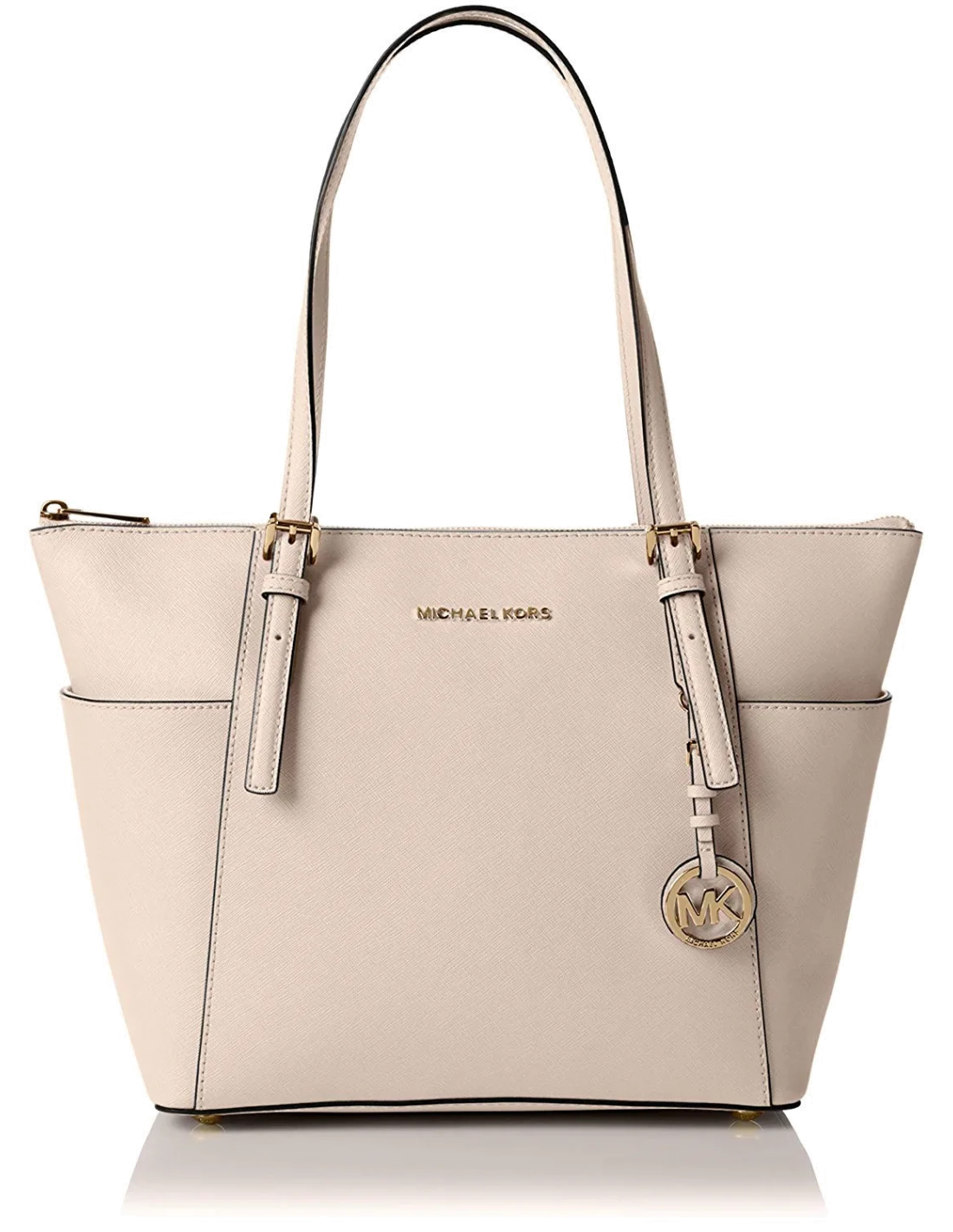 Sac à main Michael Kors Jet Set en cuir beige Saffiano à glissière sur le dessus