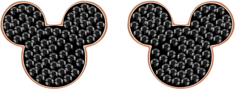 Boucles d'oreilles Swarovski Mickey & Minnie plaqué or rose et cristaux noirs - Réf. 5435137