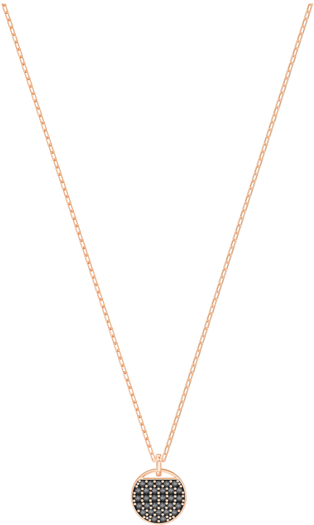 Chaque détail de ce modèle a été pensé pour captiver. La finition polie de l'or rose réchauffe le teint, tandis que le cristal noir Swarovski apporte une touche de mystère et de glamour. Sa conception compacte et raffinée se distingue avec subtilité sur le décolleté.
