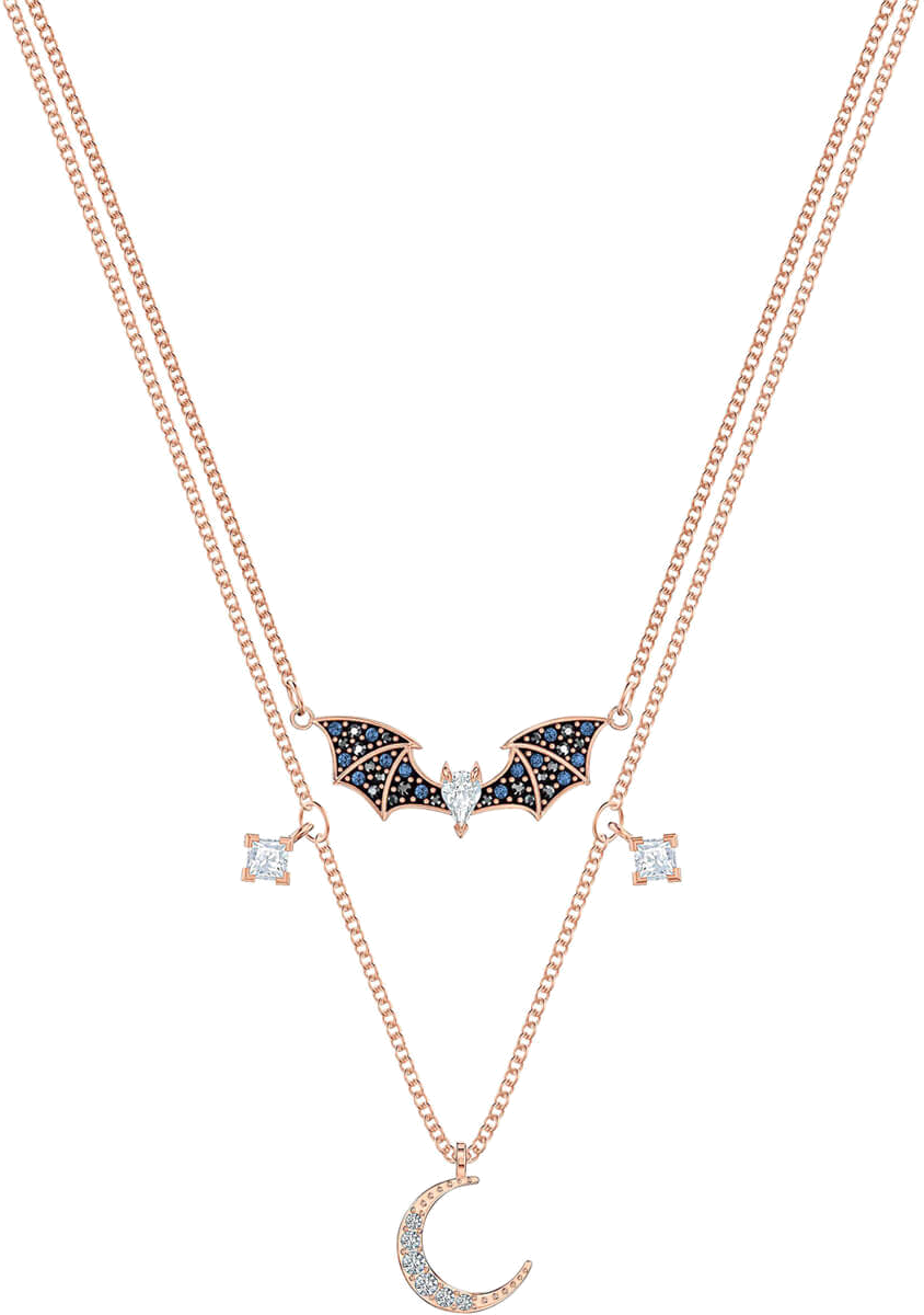 Le collier Swarovski Prosperity 5491565 est une création fantaisie en métal plaqué or rose, alliant symbolisme et élégance contemporaine. Sa chaîne de 40 cm présente un double pendentif unique : une chauve-souris ornée de cristaux Swarovski multicolores et un délicat croissant de lune. Ce bijou, serti de zirconium, incarne une esthétique mystique et raffinée, parfaite pour les femmes recherchant un accessoire à la signification profonde.