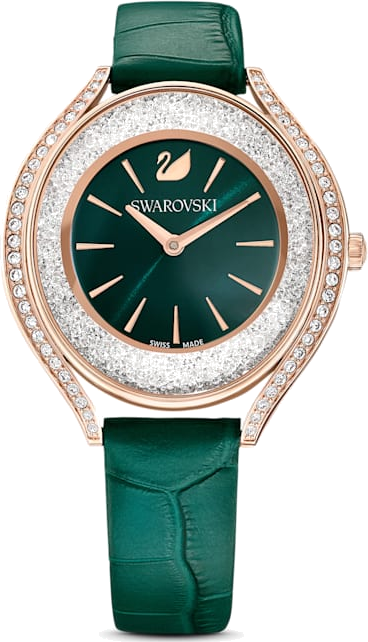 Montre Femme Swarovski 5644078, Cadran Tonneau Vert et Boîtier Or Rose, Bracelet Cuir Vert